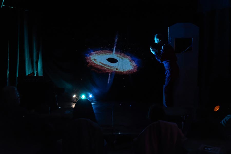 Conçu comme un spectacle interactif et pédagogique, Aux Confins de l’Univers mêle humour, science et émerveillement pour sensibiliser petits et grands aux secrets du cosmos.