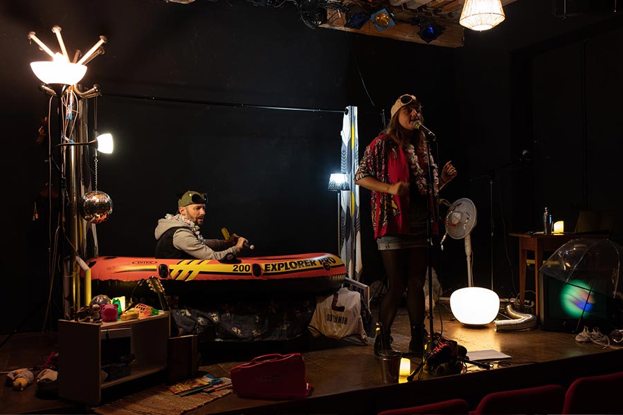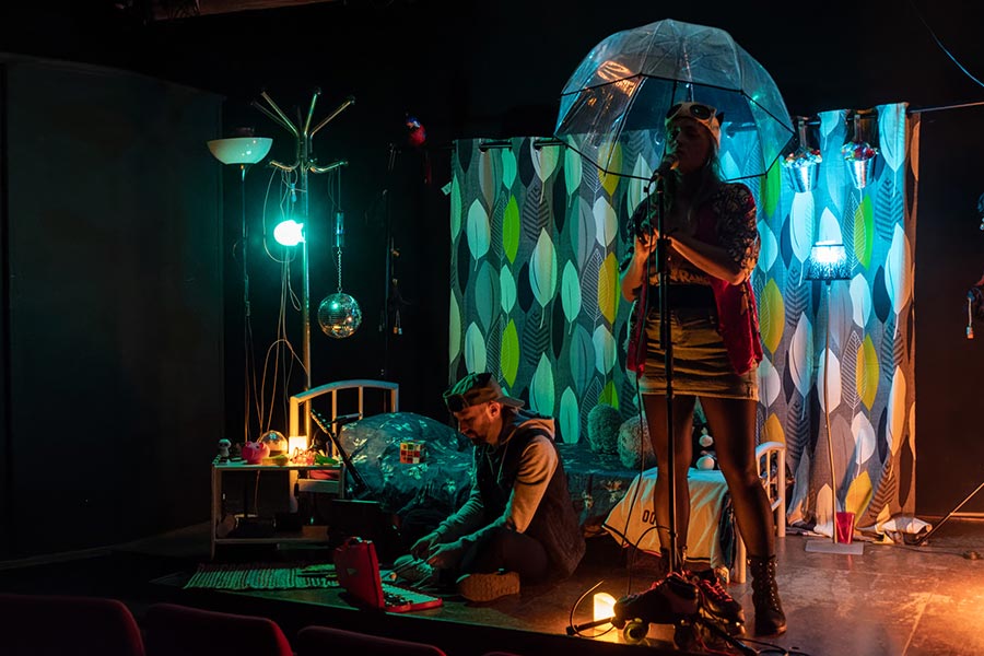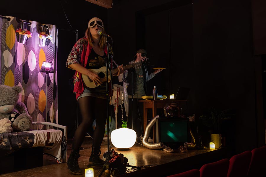 Une vieille télé, un lit, une boule à facette... GOMGOM se révèle être un concert-spectacle original conçu pour divertir aussi bien les enfants que les parents. La performance allie poésie, humour, chorégraphies... et même une dégustation de crêpes !