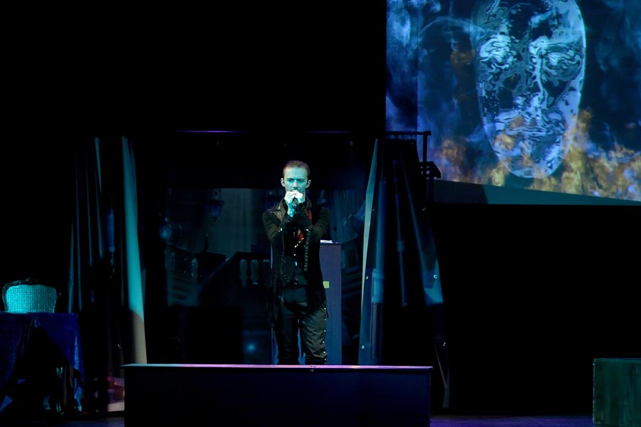 Loin du drame shakespearien classique, ce spectacle joue avec les codes du conte et du burlesque. La scénographie mêle des costumes d’inspiration médiévale et gothique, un jeu d’acteurs chorégraphié et une utilisation innovante de la vidéo. Roméo, par exemple, possède un miroir magique qui, sous forme de projections vidéo, dialogue avec lui et dévoile ses pensées les plus profondes.